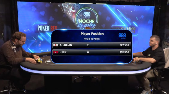 Durante el desarrollo del torneo surgieron dos manos clave que marcaron un antes y un después para Alex Iulian. Primero, en un cooler a su favor, Alex recibe pareja de ases (AA) y abre all‑in preflop contra Javier Rey que tenía J‑J; la mano no mejora y Alex se dobla, pasando de cobertura comprometida a chipleader.